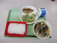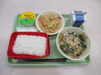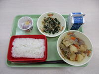 本日の献立:ご飯、牛乳、冷ややっこ、磯煮、いなか汁です。