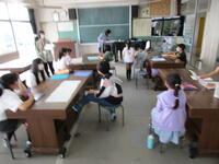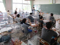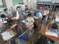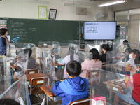 連休の疲れも見せず、元気に登校しました。今日は、3年2組と2年1組の授業の様子を紹介します。