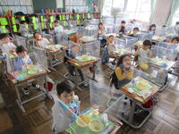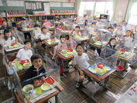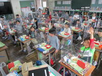 今日は、1年3組の皆さんの様子です。1カ月が経って小学校の給食の準備から片づけまで慣れてきました。残さずたくさん食べて、元気をつけているようです。