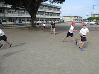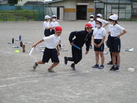 3年1組「体育」リレーの練習をしました。班で、何回も繰り返し練習をしていました。