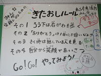 ・1階の委員会活動のコーナーに、「きたおしルール」の掲示物が貼ってあります。これは、代表委員の人が、学校生活をよりよくしようと考えて作ったものです。とてもよくまとめてあります。ルールの説明は、代表委員が皆さんに伝えるのでよく聞いて守りましょう。