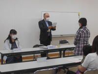 1つ目は、本日から6月 日まで、教育実習生が本校で実習します。1年生を担当します。全校生の前で自己紹介をしてもらいました。