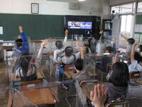雨の影響で校庭で行う予定だった交通安全教室を、各教室でリモートで実施しました。