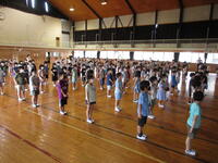 7月20日水曜日は、第1学期の終業式でした。上学年と下学年に2回に分かれ、距離をとって行いました。