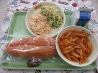 14日金曜日 セルフハムエッグサンド・牛乳・ツナサラダ・ペンネボロネーゼ