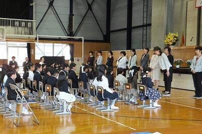新任式では、教頭から新たに北押原小学校に着任した6人の教職員が紹介され、児童から歓迎の言葉が贈られました。