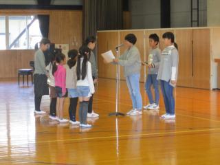 今日は業間に全校集会が催されました。