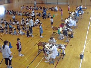 本日は歯科検診を実施しました。457名の児童を5名の学校歯科医の先生方がみてくださいました。
