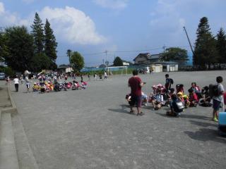 3年生は、各自が思い思いに絵を描きオリジナルうちわをつくって会に臨みました。うちわを使った振り付きで、鍵盤ハーモニカで自分たちが伴奏して歌を歌いました。そのあとうちわバレーボールをして楽しみました。