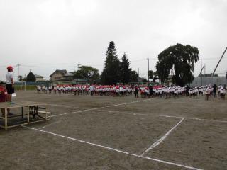 今日は天気予報通りにならず、一日中曇ったままでした。お陰で朝にした全体練習の後も校庭を使って体育ができました。