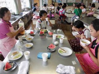みんなで楽しく会食し、食器など用具の後始末までやり、充実した半日が終わりました。参加した子供たちは、これから家庭でも力を発揮してくれることでしょう。食生活改善推進委員会の皆さん、市健康課の皆さん、ありがとうございました。