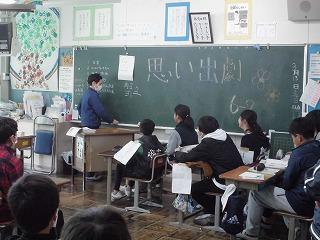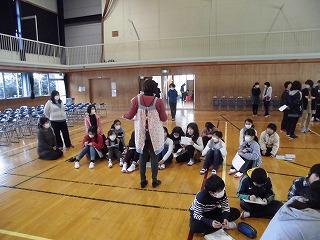 今日は、学校行事等のイベントがなく、ごく普通の日課で子供たちが過ごしています。天気も良く校庭では体育でサッカー、教室では三学期の作品等を持ち帰る作品バックの絵付けなどが行われていました。学級会で話し合って決めたことを、1年生が「1年間ありがとうの会」、6年生が「思い出劇」として実践していました。