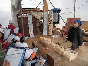 第3学年の「総合的な学習の時間」の学習テーマの一つに「まちの名人に学ぼう」があります。そこでは、地域の人材を素材にし、課題発見力、対話力やまとめの段階での表現力を育てる学習を行います。