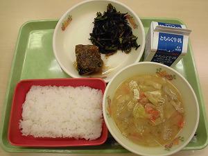 【今日の給食】ご飯 牛乳 かつおのゆずみぞれ煮 磯煮 豆乳入り味噌汁