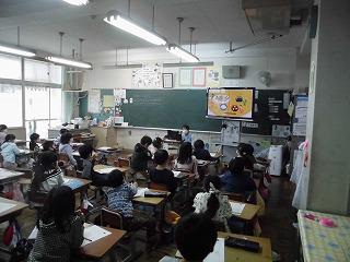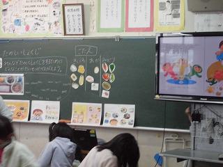 本日は、1年生での「食の指導」です。絵本を使ってバランスのよい食事について楽しく学ぶことができました。
