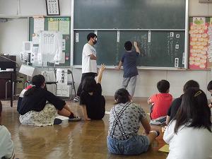 校庭には、2年生と3年生が学習をしていました。