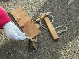 後片付け、これが大切!       火おこし体験の道具        さあ、気合いを入れてー、摩擦!