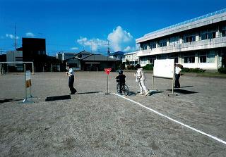 校庭にて自転車の乗り方を確認