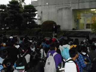 校庭で遊んでいるところから                   校舎内へ逃げる