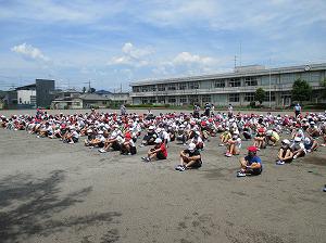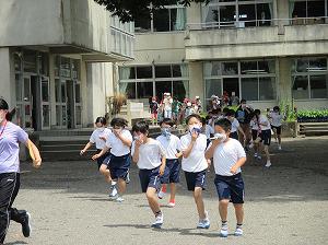 本日は、地震発生後に校舎内から火災が発生したことを想定した訓練です。事前指導が生かされた訓練となりました。最後に、全体での人員確認後に、学年ごとに振り返りを行いました。