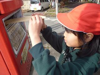 今日は、切手を貼って、近くのポストへいざ投函。