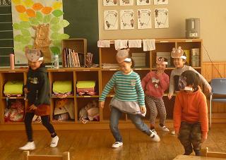 いたずらをしたり、罠にかかったり、糸車を回したりと、友だちの音読に合わせ、上手に動作化できました。