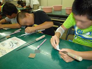 最後の勾玉(まがたま)作りでは、みんな夢中で石を磨き、勾玉を作りました。実際に作ってみると、「昔の人もこんなふうに作っていたのかな。」と、展示されているものを見るのとは違った別の感覚がわきあがってきました。