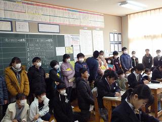 次に授業参観をしました。大人数での学習の様子を見学し、中学校の雰囲気を体験することができました。