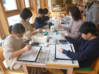 5・6年生は、ボランティアの方々に教わりながら、親子で絵手紙づくりをしました。