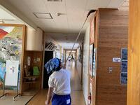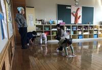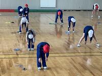 冷たい水に手がかじかみましたが、低学年も一生懸命床の汚れを落としました。