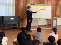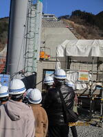 独立行政法人水資源機構 思川開発建設所の職員の方に学校へお越しいただき、出発前にダムの工事についての説明を受けてから出発しました。