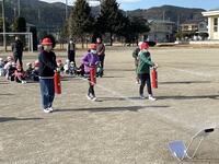 その後、校庭での消火訓練、室内での煙体験を行いました。