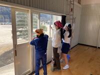 今日は、しゅろぼうきを使い天井のくもの巣をとったり、歯ブラシを使って窓の桟をきれいにしたりしました。