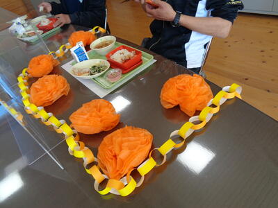 6年生は、先生方を教室に招待する「お別れ給食」を行っています。すると、校長先生が6年生を校長室に招待する「卒業お祝い会食」を提案してくださりました。それならばと、校長先生の席を6年生が飾り付けをし、いざ会食。ちょっぴり緊張した面持ちで入室してきた子供たちも、すぐに話が弾み、衝立越しの会話を楽しみました。今日会食できなかった6年生は、月曜日と火曜日に行います。楽しみですね。