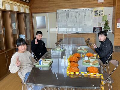 6年生2人と本校唯一の5年生1人のあわせて3人と給食を摂りました。