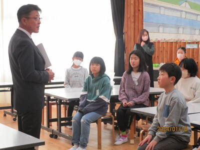 始業式の校長講話の際に、元日に発生した能登半島地震について話し、災害は時と場所を選ばないので、いつでも自分の身を守ることができるよう心の準備をするよう伝えていました。