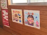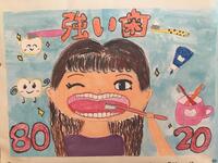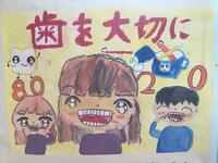 向かいには、良い歯のコンクールで佳作に入賞した作品が掲示されています。3年生女児、4年生女児の作品です。どちらも表情が素敵です。80歳まで20本が合言葉です。