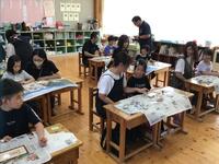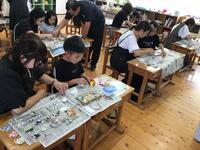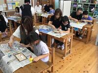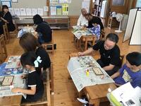 午後は創作活動です。清一小は全員「杉板焼き」に取り組みました。かまどに薪をくべる事から始まり、板を切り、焼き、磨き、彩色まで行いました。完成品は家に持ち帰ります。