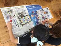3・4年生、キラキラ学級廊下です。図工の作品や自作新聞が掲示されていました。