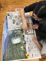 色や形の違うタイルを選んで、親子でイメージを膨らませながら楽しそうに活動していました。
