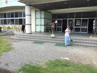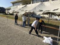 3年生以上の児童、職員、保護者役員3名の方で、明日開催する運動会の準備を行いました。天気も良く時間内で順調に進めることができました。