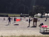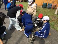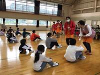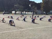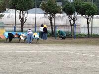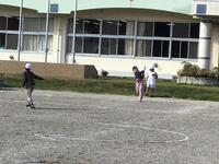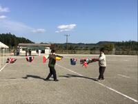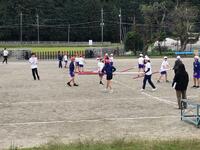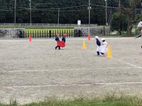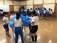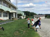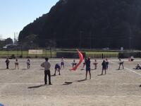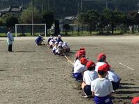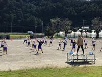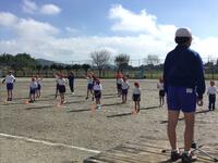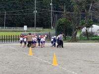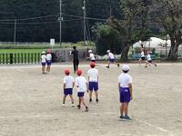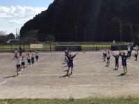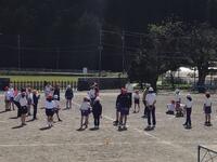 校庭では、低学年と高学年に分かれて団体競技のやり方を練習していました。
