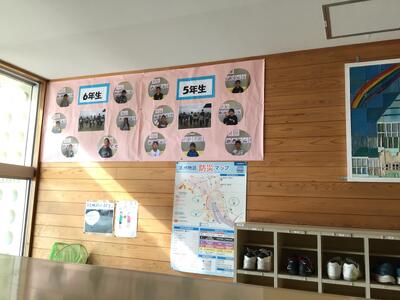 児童昇降口の顔写真がリニューアルしました。業務支援員が作成したもので、いく日か前から職員室で作業をしていた姿を見かけていましたので、完成したものを見て、これだったのかと納得しました。学校へお越しの際にご覧ください。