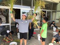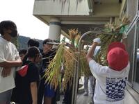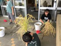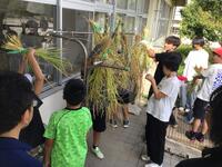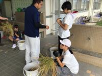 5・6年生が、バケツ稲の刈り取りと、はさ掛けを行いました。