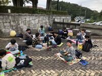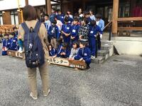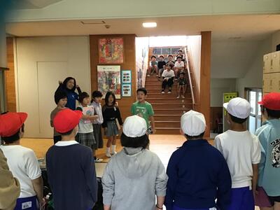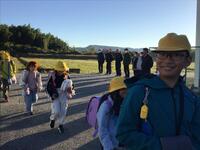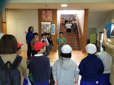 3日目の活動です。まず初めに施設前で集合写真を撮りました。 5つの小学校の連合のため、全員が揃うまで少しばかり時間もかかりましたが無事に良い写真が撮れたようです。