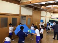 体育館を会場にして、児童と高齢者との交流活動を行いました。