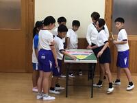 最初は会話が少なかった子ども達。しかし、打ち解けるのはとても早いです。仲間作りゲームを終えた後の後片付けでは、声をかけ合いながら協力し合って行動していました。