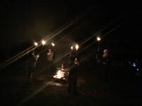 キャンプファイヤーは、火の神が登場し、火を与えてもらう事から始まり、燃え盛る火を見ながら思い切り歌う等活動を楽しみ、最後は火が小さくなっていく様子を見ながら班ごとに振り返りをしました。