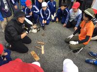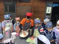 本日のメイン活動はピザ作りです。まず手始めに、火起こし体験をしました。コツを掴むまではどの班も悪戦苦闘していたようです。