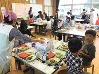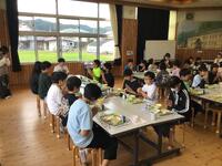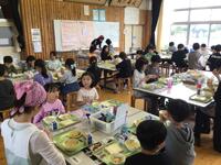 学校運営協議会委員の方々にも自由に参観していただき、2日目には各教室に分かれて、給食の試食をして児童と楽しい時間を過ごしていただきました。児童と協議会委員の方々が交流する機会はこれが初めてとなります。この日は5・6校時の公開でしたので、15時までは自由に参観していただきました。